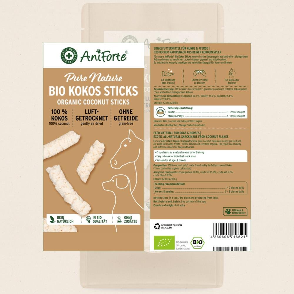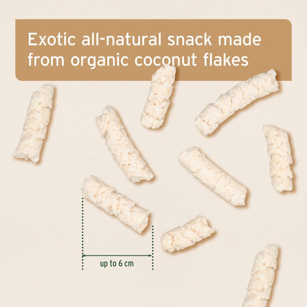 AniForte® Organische Kokossticks worden op milde wijze geproduceerd en geperst tot een exotische en smakelijke snack voor tussendoor – zonder kunstmatige toevoegingen. Dankzij de knapperige textuur zijn ze bijzonder praktisch. Ze passen in elke jaszak, kruimelen niet en vallen niet uit elkaar, en kunnen eenvoudig met de hand worden gebroken. De traktaties kunnen worden gegeven als beloning of tijdens de training. Beste biologische kwaliteit uit Sri Lanka.