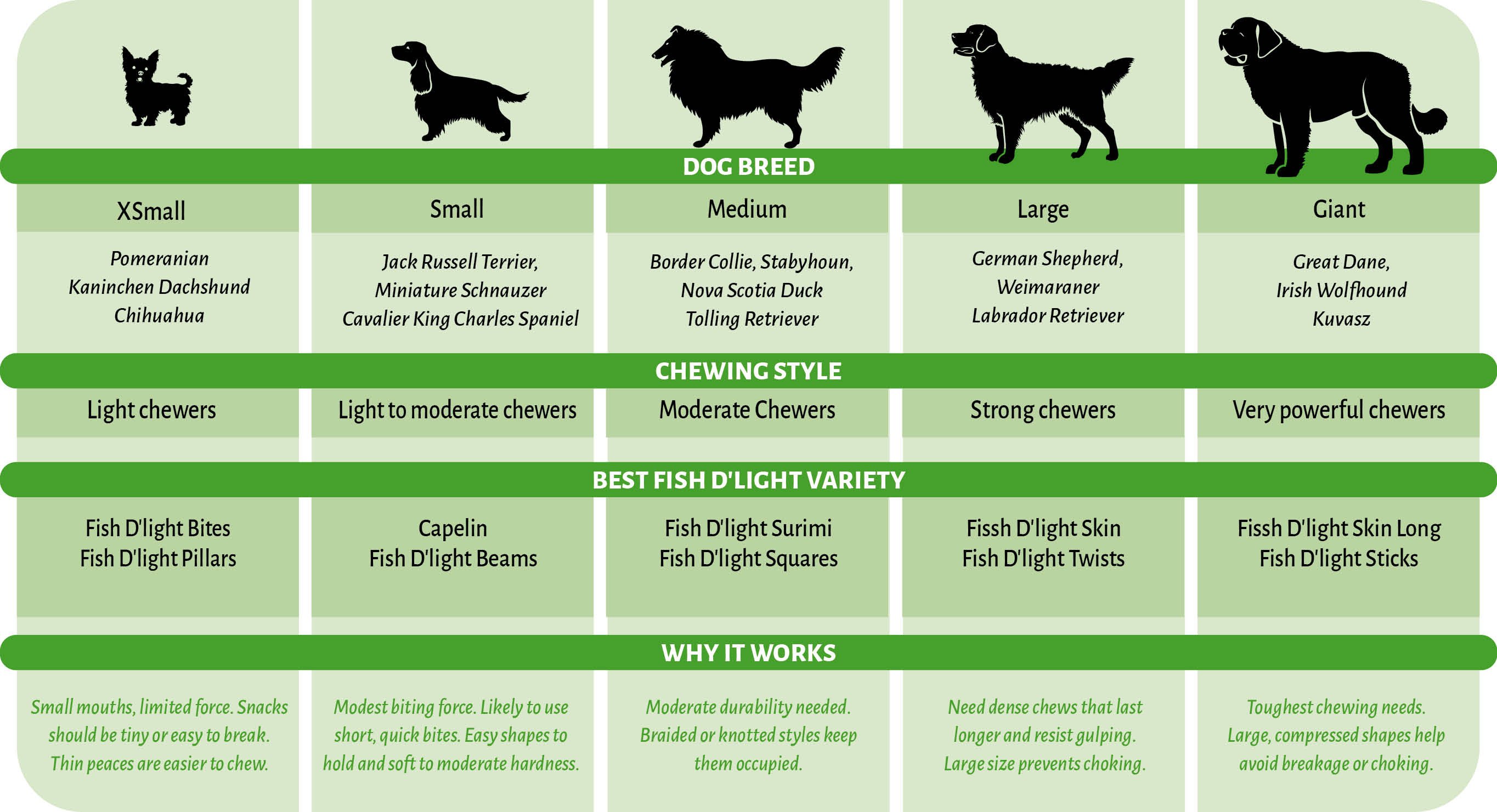 Onze ChickenD'Light® zijn vleesrijke hondensnacks van kip die de kracht en vitaliteit van je hond helpen te ondersteunen. Ze worden gemaakt met echte kip en zijn er in verschillende opties en afmetingen, voor elke levensfase en om aan de behoeften van elke rasgrootte te voldoen. Onze vissnacks voor honden zijn volledig natuurlijk, eiwitrijk en voedzaam. Elke snack zit boordevol omega's, voor een gezonde huid en glanzende vacht. Kies je favoriet en houd je hond bezig, gelukkig en gezond!