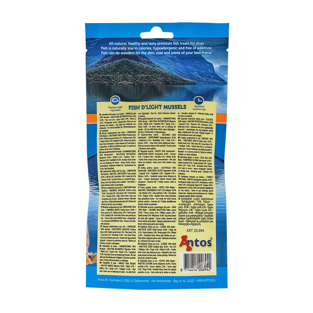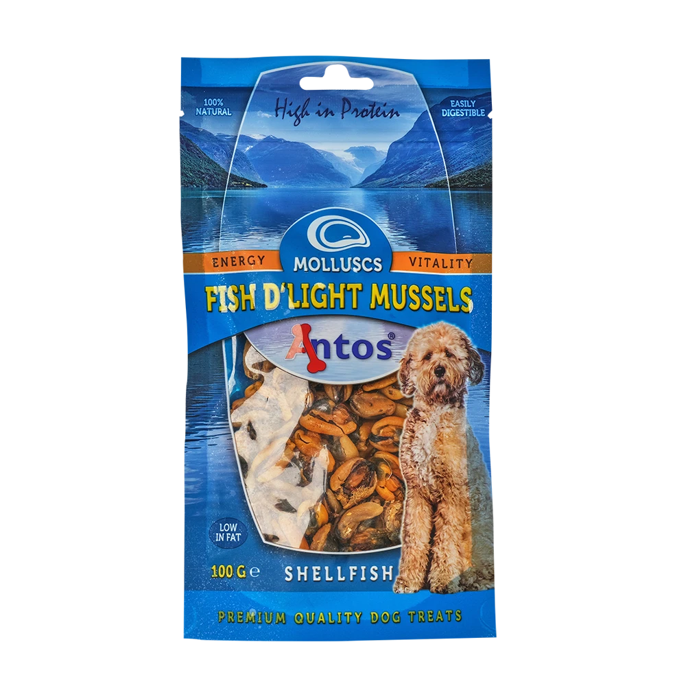 Van de zee tot de snack, natuurlijk heerlijk. Onze Fish D’light mosselen zijn een uitstekende natuurlijke traktatie voor honden, boordevol hoogwaardige eiwitten en essentiële voedingsstoffen. Mosselen zijn bijzonder rijk aan omega 3-vetzuren, die een gezonde huid, een glanzende vacht en de mobiliteit van de gewrichten ondersteunen. Deze kleine traktaties zijn natuurlijk gedroogd, licht verteerbaar en krachtig van smaak.